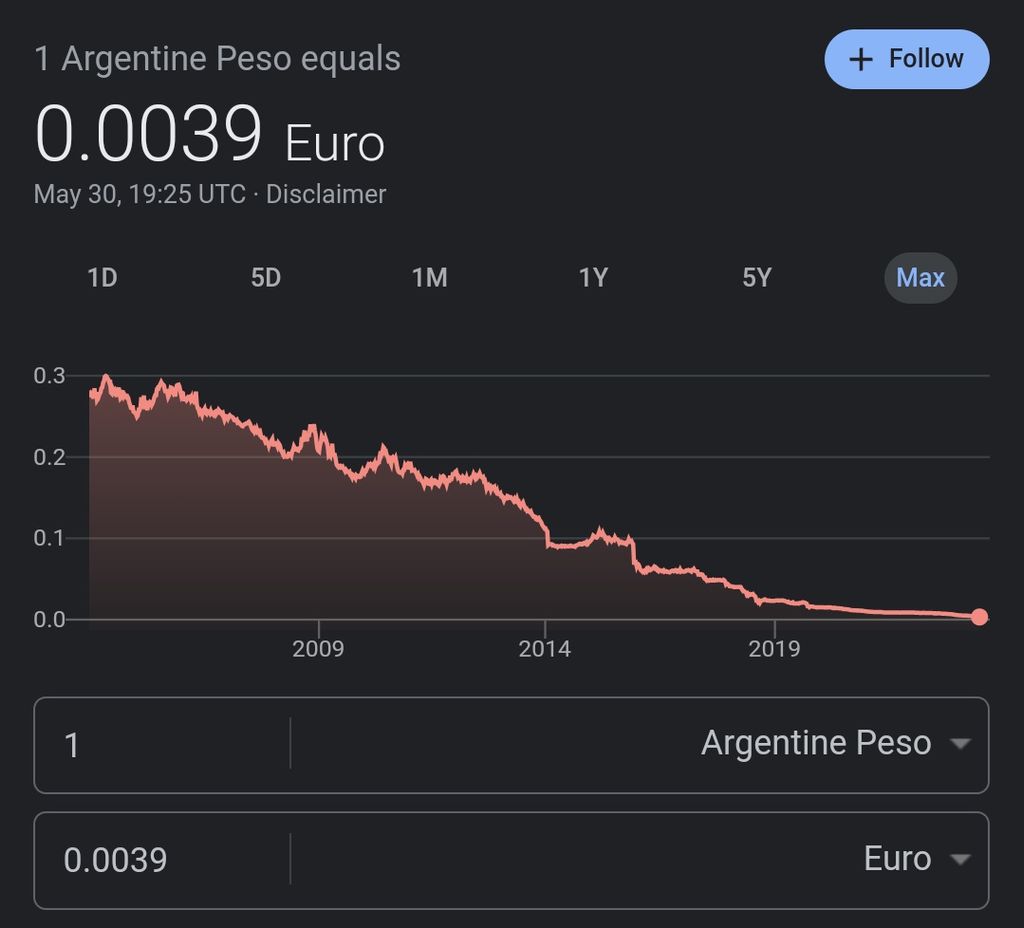 Si tu vis en Argentine mais que tes payé en dollars (ou en euros) en ce moment t'es le roi du pétrole, si t'es payé en pesos Argentin bah bonne chance, tu peux te torcher les fesses avec les billets qui valent moins que le PQ que tu peux acheter avec