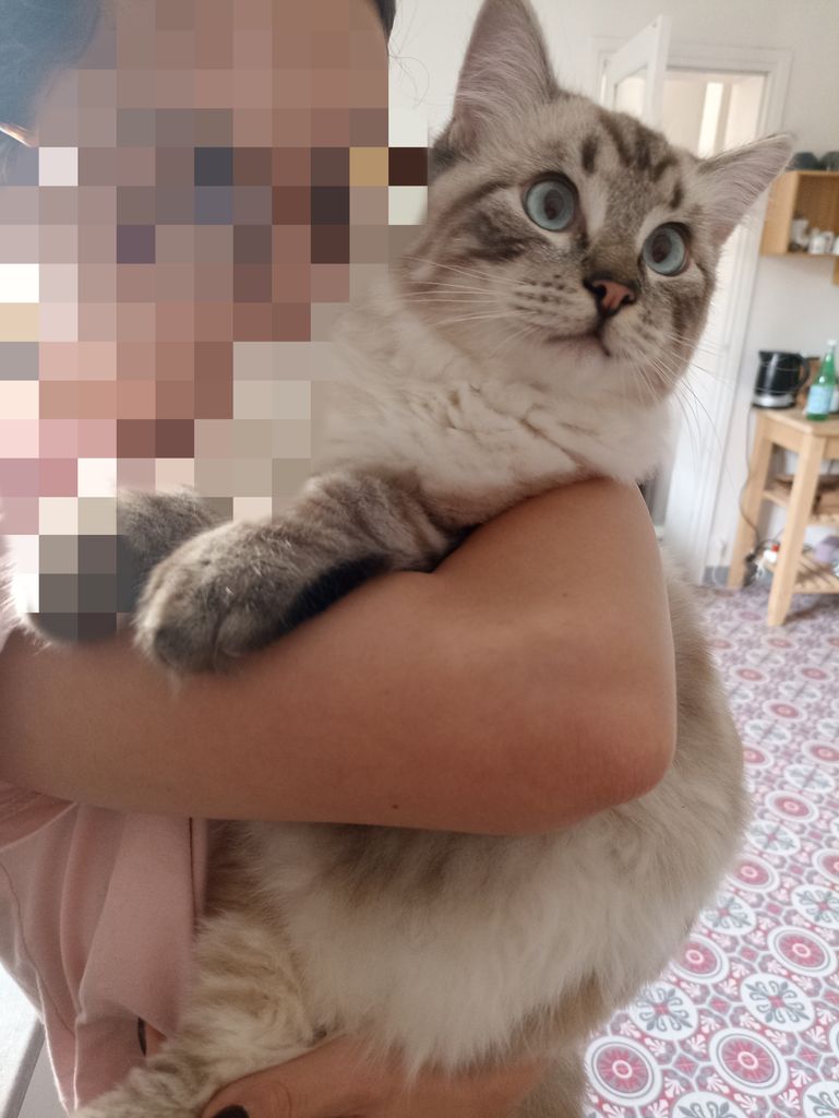 Du coup on a compris, on a écouté et on a entendu Tim qui miaulait. Le voisin a été sympa et on a dû découper un peu du mur sous les combles pour choper Tim.
