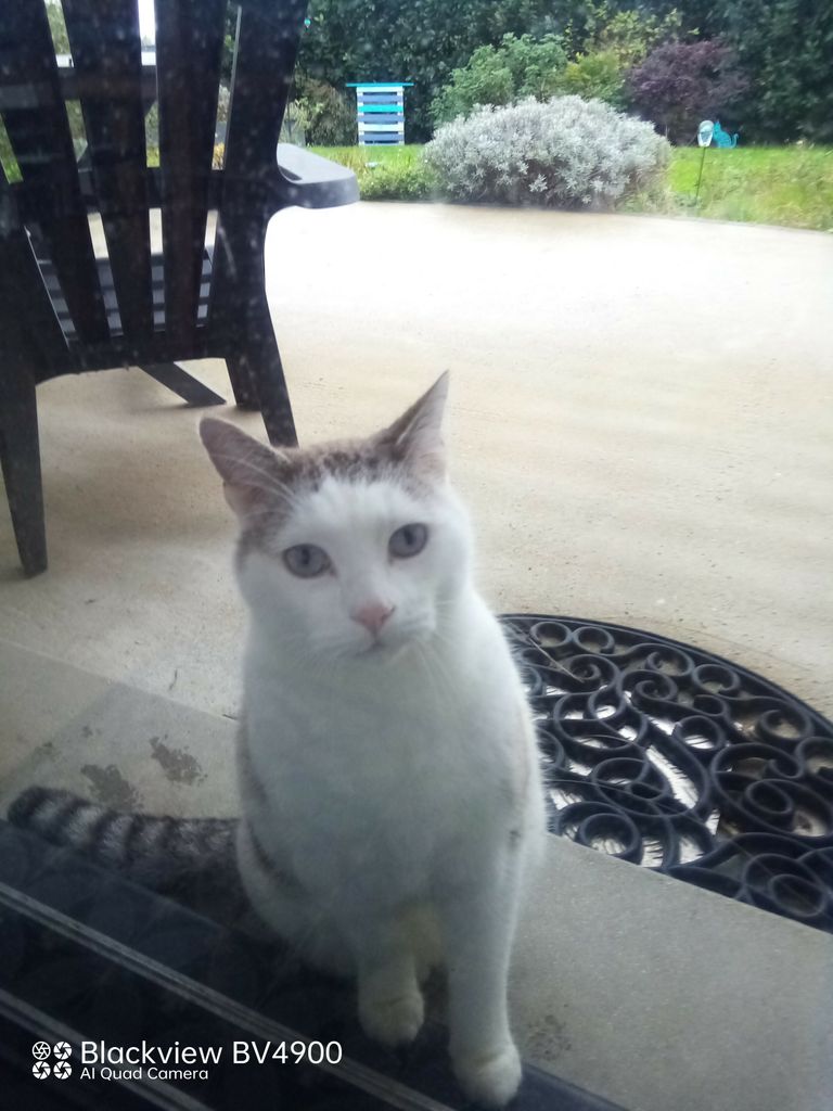 il est tout le temps dehors, il recherche la compagnie et comme il nous a ramené Tim, il a gagné croquette à vie dans le jardin