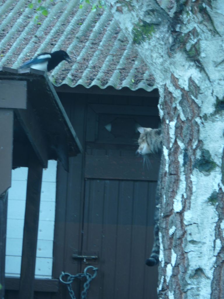 un papillon qui vole près du balcon, un pigeon qui le provoque, ou autre, et il sautera