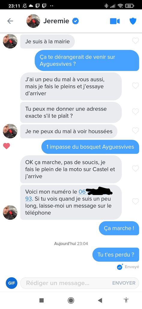 Putain par contre j'ai pas pensé au fait que je lui ai donné l'adresse d'une maison il risque de sonner sans vergogne si je me dépêche pas de lui répondre une fois qu'il est devant