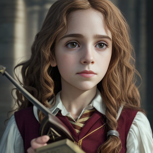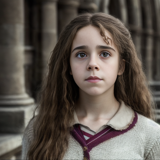 "Face shot of Hermione granger, 50mm, award winning photography, high quality, 4K"