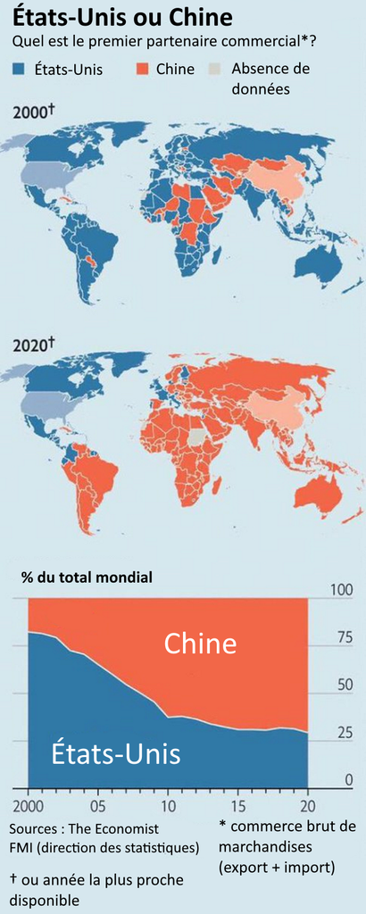 Complétement vrai, sans oublier que la Chine a de plus en plus de partenariat financier avec des pays d'Amérique du Sud, pays pauvre, mais riche en pétrole (Vénézuela), ou lithium et autres terres rares (Pérou et Chilie), même les plus grands alliés d'Amérique du Sud des USA, la Colombie, a des partenariats avec la Chine