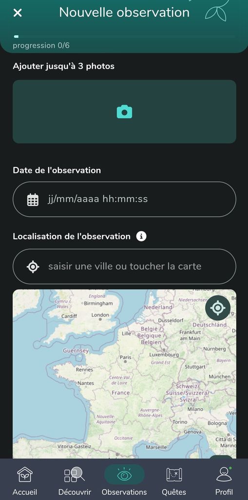 Pour faire une observation c'est très simple, vous ajoutez 3 photos max, plus date et heure et la localisation