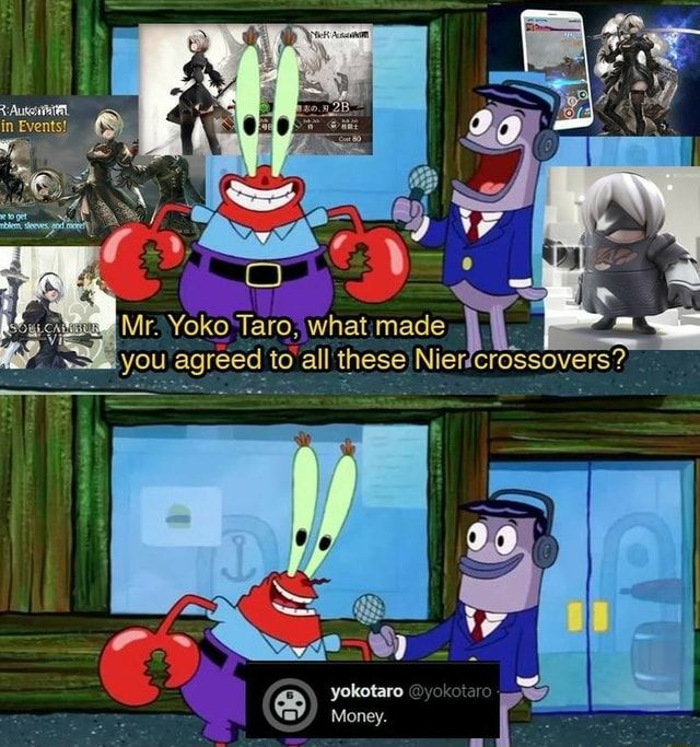 Yoko Taro "C'est gentil mais ne m'envoyez pas de l'argent je suis très riche. Envoyez les plutôt à des oeuvres de charité."