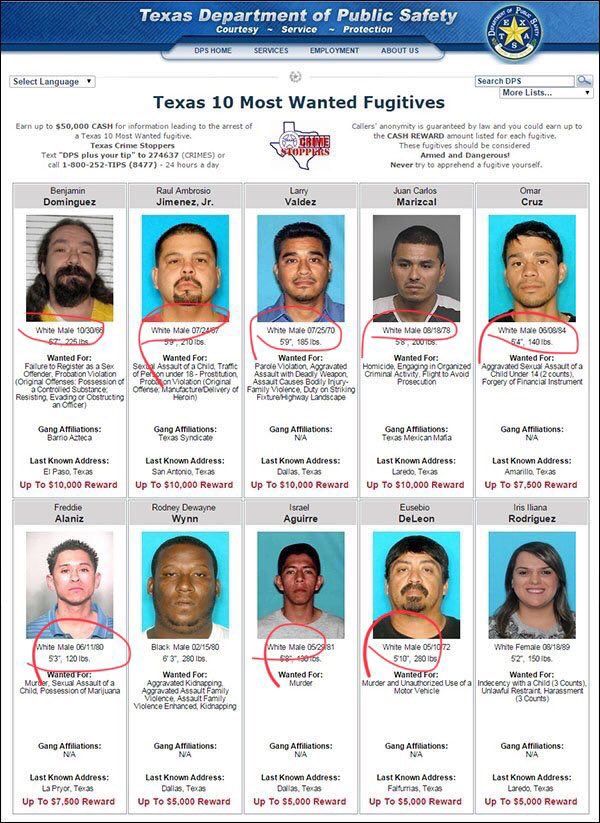 Va falloir m'expliquer pourquoi dans le top 10 des fugitifs les plus recherché au Texas