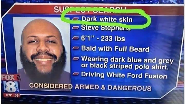 Il y avait aussi un mec qui avait fait un attentat à New York je crois, les médias US avaient poussé la luminosité des images de vidéosurveillance à fond pour le faire paraitre blanc.