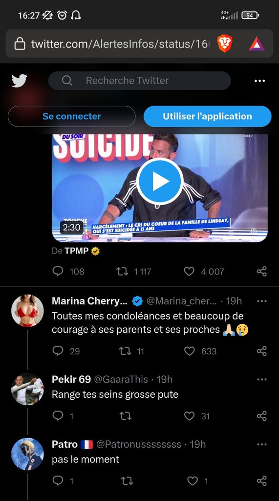 Genre les parents ont vu l'entièreté des postes en disant " ma fille elle faisait la forte je voyais pas le mal être "