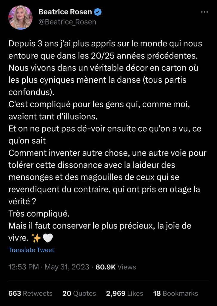 En vérité l'ère covid ça m'a vraiment mis une claque sur les dirigeants et la population....