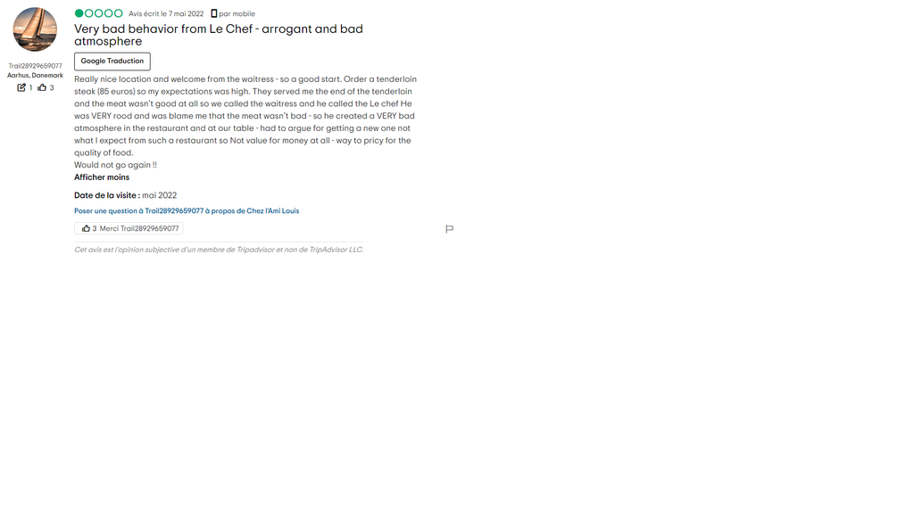 >Ici ce client trouve que :