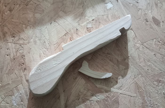 On s attaque ensuite à creuser un trou qui nous servira à fixer le mécanisme de la détente .