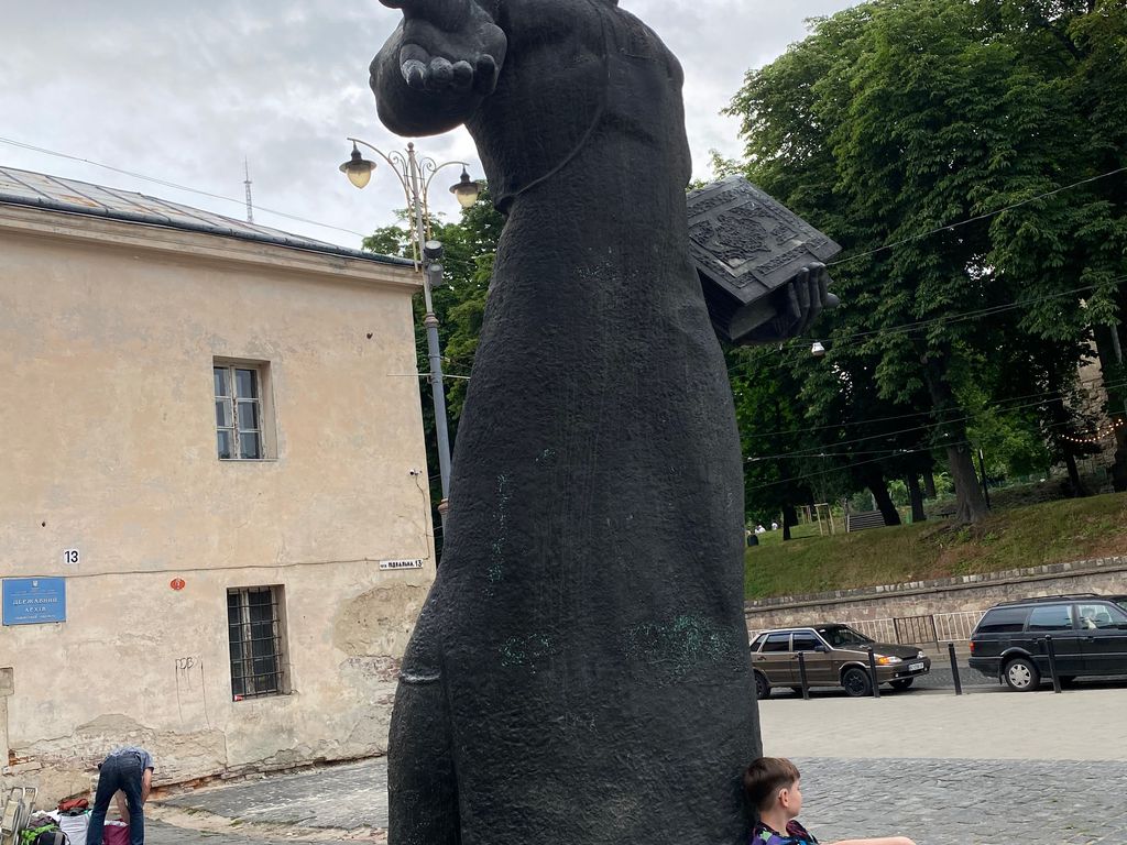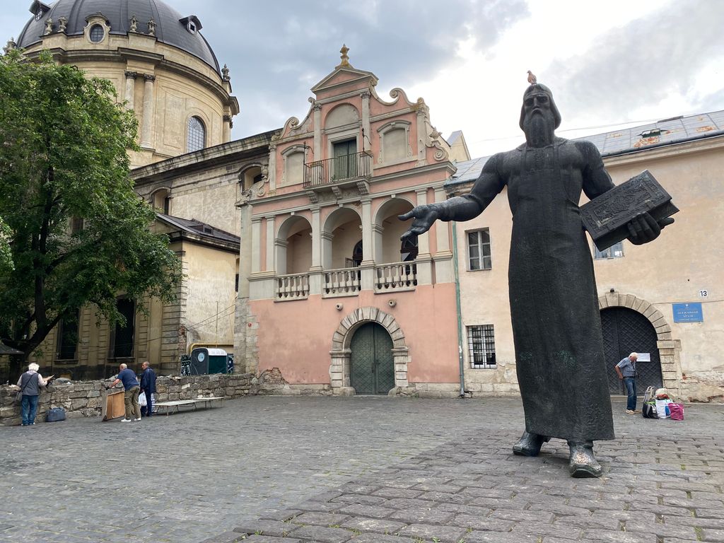 Notre prochaine destination était la statue d’Ivan Fedorov, une figure proéminente du monde slave qui a notamment inventé l’imprimerie en Ukraine