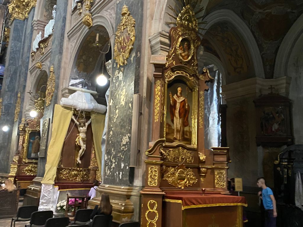 Ensuite un peu plus loin on est passés devant la porte d’une autre église assez célèbre à Lviv puisque c’est le lieu de pèlerinage de toutes les instaputes de Lviv, elles ont coutume de prendre au moins une photo devant