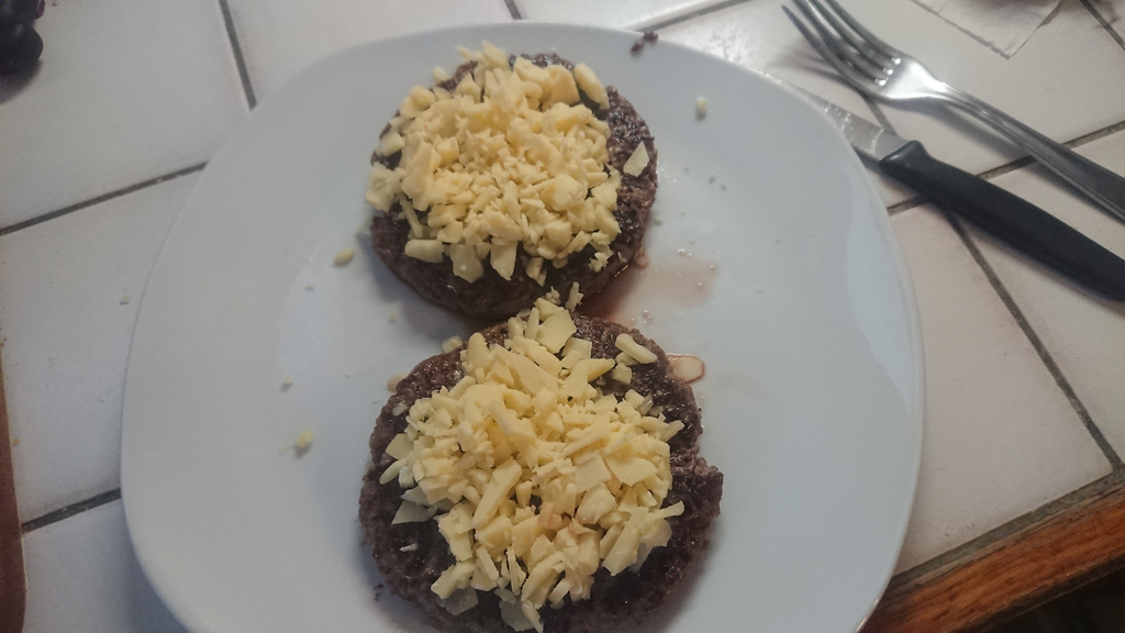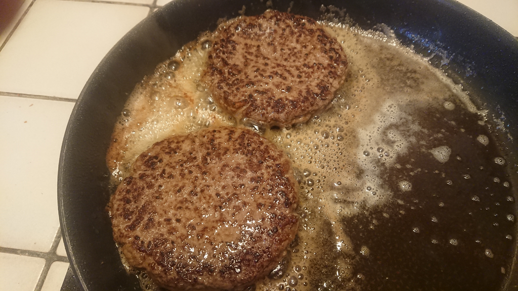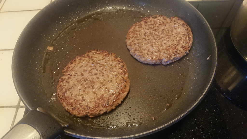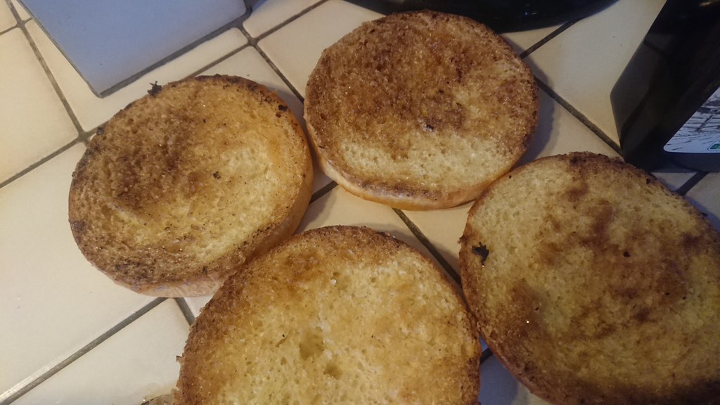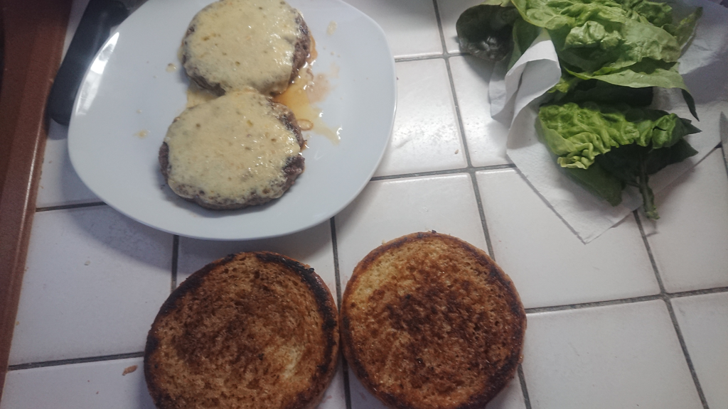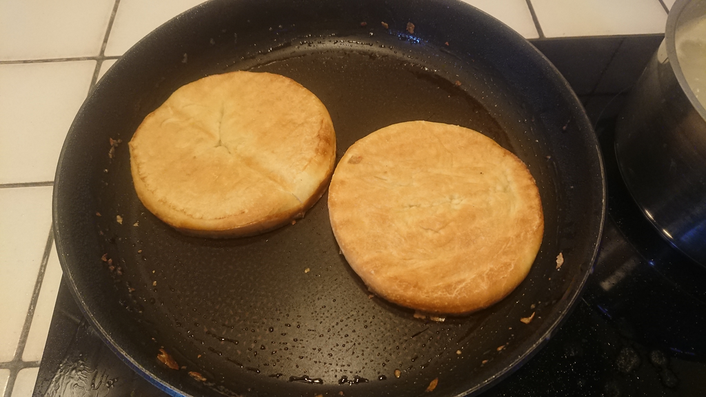 - Mettre le cheddar sur les steaks et les passer brièvement au grill le temps de le faire fondre ce qui va aussi finir la cuisson accessoirement. Pendant ce temps faire dorer les pains à la poêle
