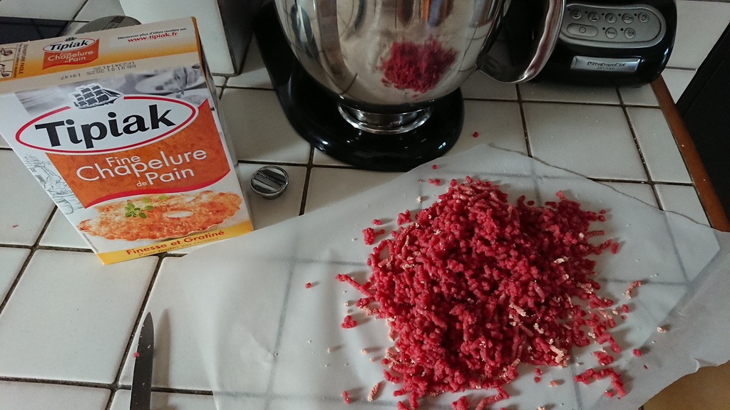 Astuce Chef Dumas un peu de chapelure pour faire passer le reste de la viande dans le broyeur