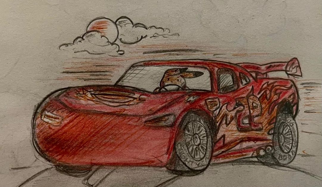Pikachu qui conduit la voiture de cars (flash mc queen)