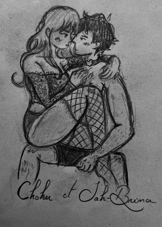 Je ne garantis pas vous dessiner en train de faire l'amour mais je vais essayer de produire une scène érotique entre Choker chad et Sah-Brina trap