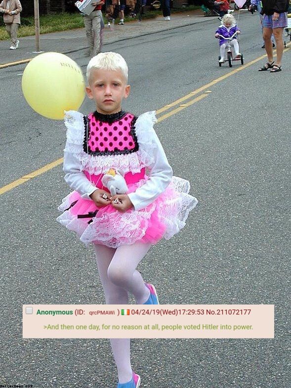 T’as déjà participé à une marche ? Arrête un peu de raconter n’imp les types en cuir ou à moitié à poil ils sont quasi inexistants, en trois années de pride j’en ai jamais vu. Même celle de Paris que j’avais faite j’en avais vu aucun.