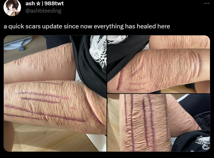 "Une petite mise à jour sur mes cicatrices a présent que tout est soigné"