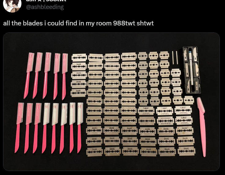 "Toutes les lames que j'ai trouvées dans ma chambre"