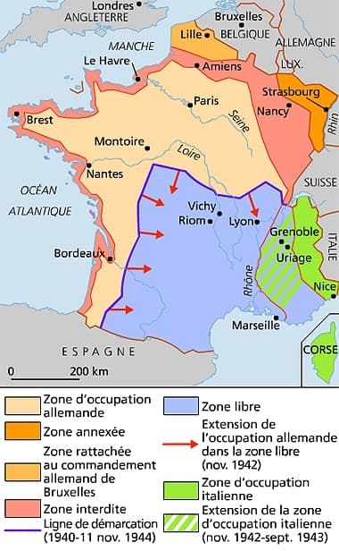 Les méchants nazis qui décident d'occuper que la moitié du pays en laissant l'autre moitié aux français