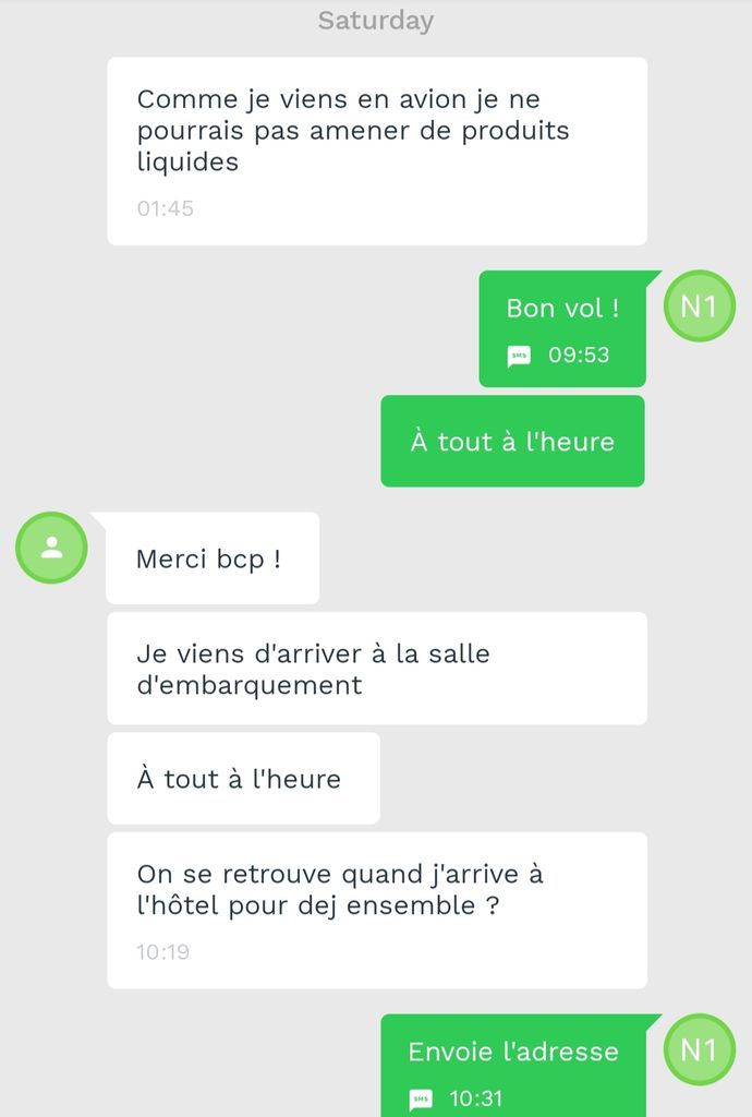 Pour rappel voici ses premiers messages (mon fake avait « on va au bar ? » comme bio)