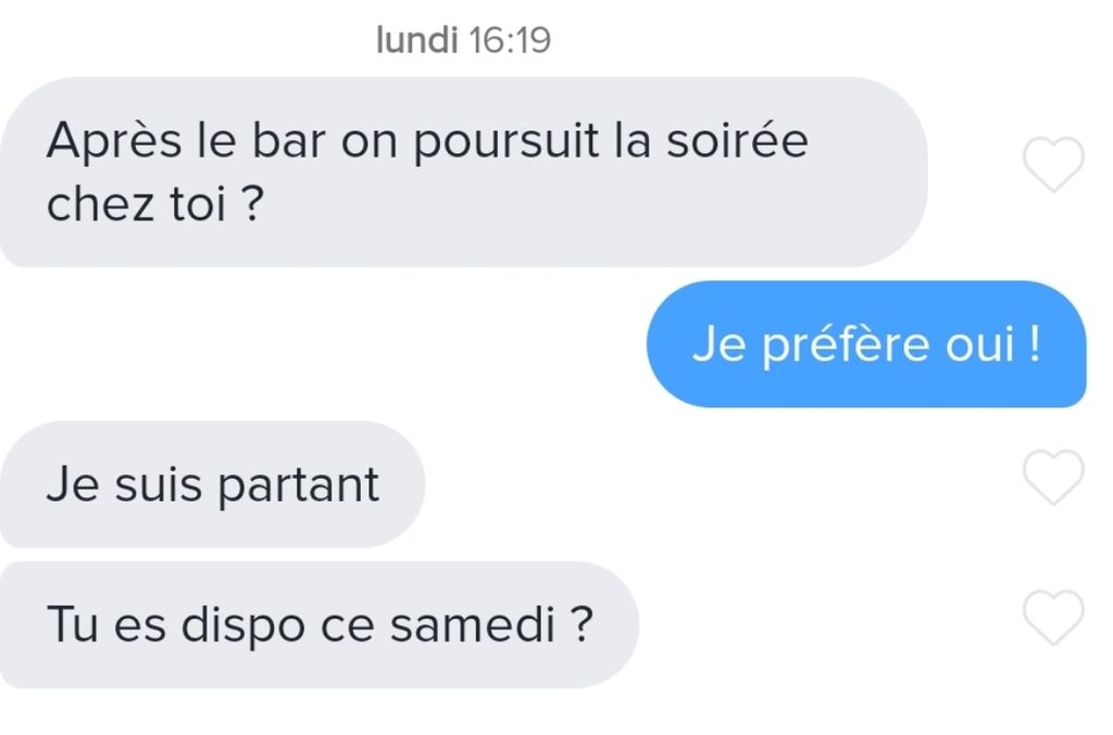 C'est chaud de se dire que des greluches font vraiment confiance aux mecs Tinder qui disent chercher une relation sérieuse et qui essaient après chaque date de voir s'ils peuvent coucher avec elles (au bout d'un moment elles acceptent « pour ne pas le perdre » et le mec se barre car depuis le début il voulait seulement ça et elles sont étonnées)