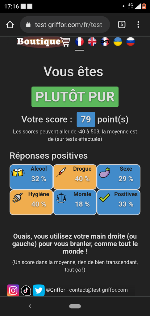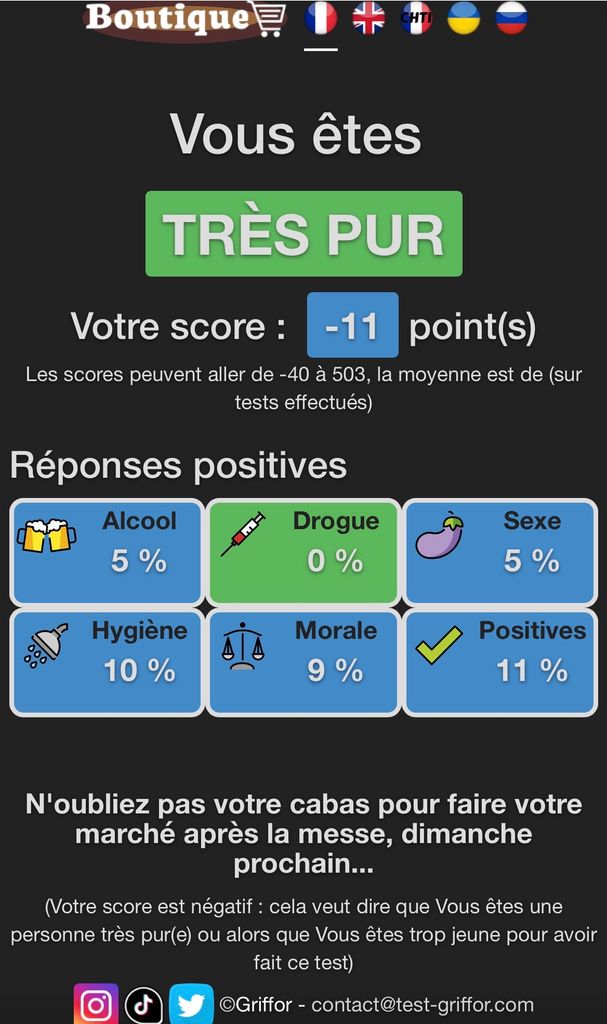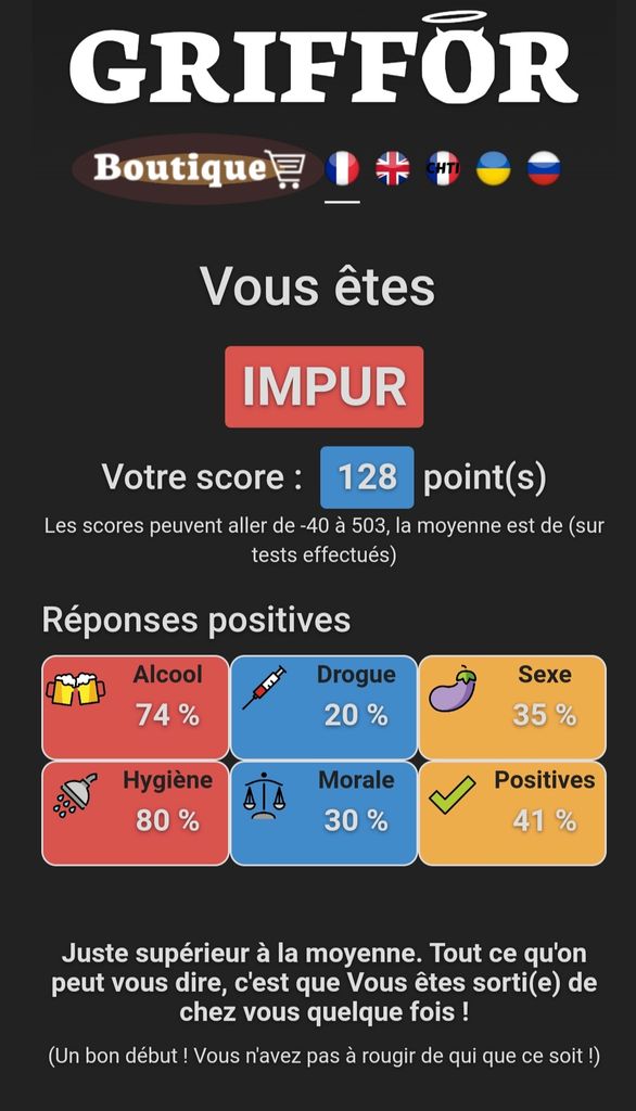 "(Vous êtes considéré(e) comme une personne très pure ayant vécu peu d'expériences, peut-être par choix ou par manque de maturité ;-) )"