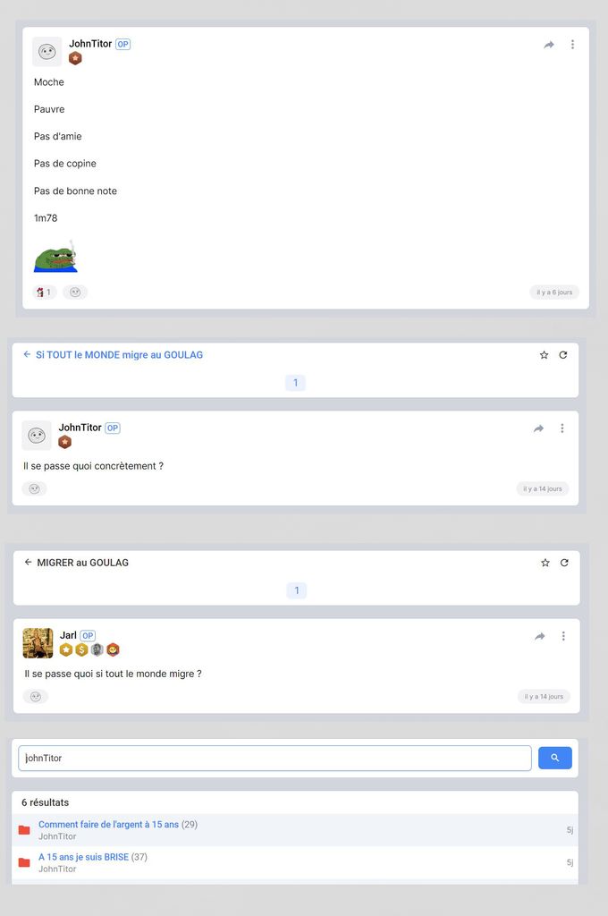 Tu as juste pété un câble à la fin quand un forumeur à contacter Feldup pour prouver que tu étais pas en contact avec lui et que Feldup lui même s'était foutu de ta gueule en message privé.