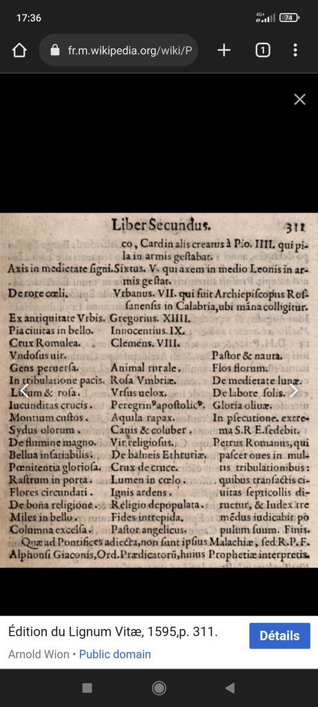 Ouvert ton site, vu la prophétie de saint Malachie (qui est un faux du XVIe siècle comme l'a démontré définitivement Mgr Cristiani), refermé ton site.