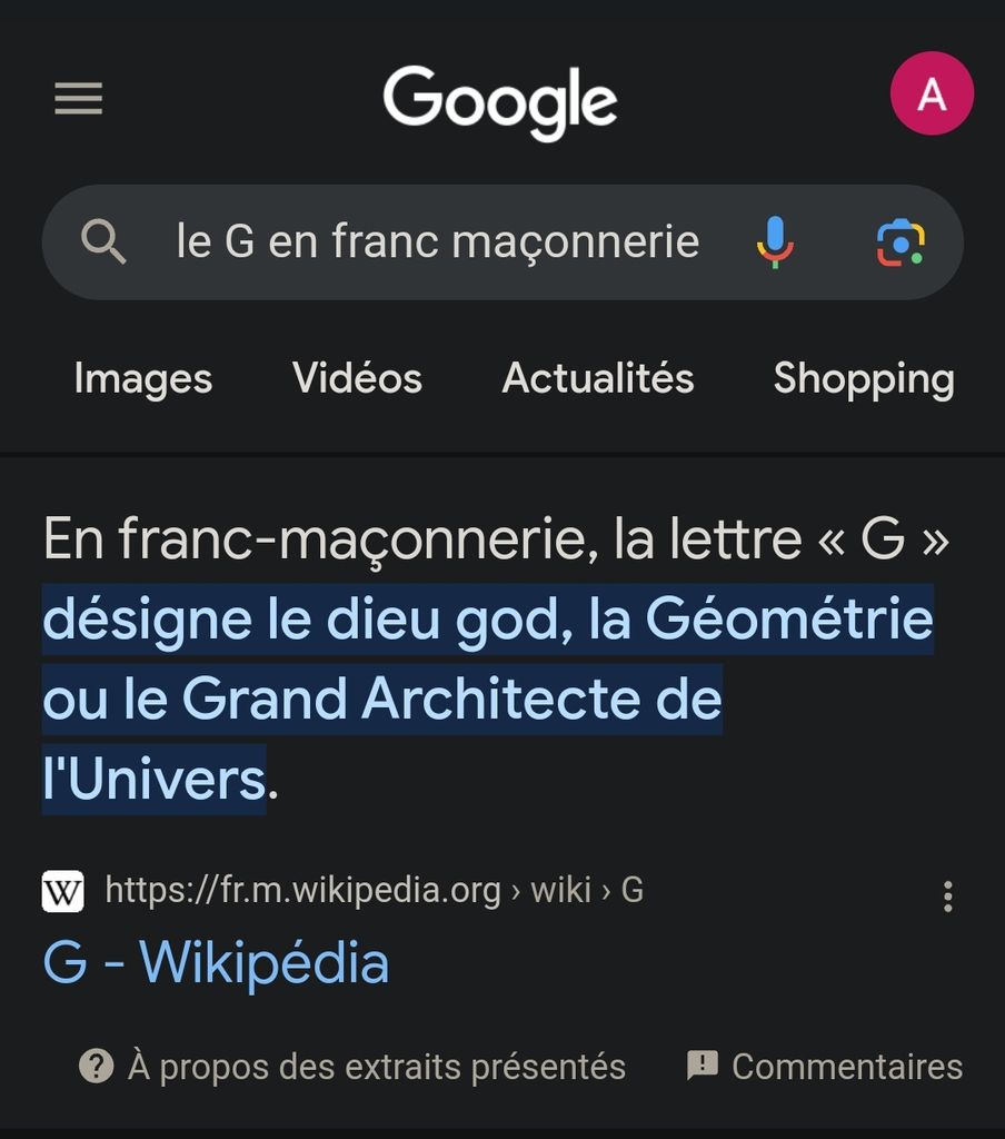 La Franc maçonnerie à un symbole qui est lequerre et le compas qui représente le GADLU ( Le Grand Architecte de l'univers) c'est à dire Dieu