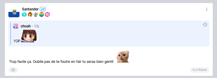 @Santander banned ou goulaged car insultes après quelques pavés redpill sur la géopolitique.