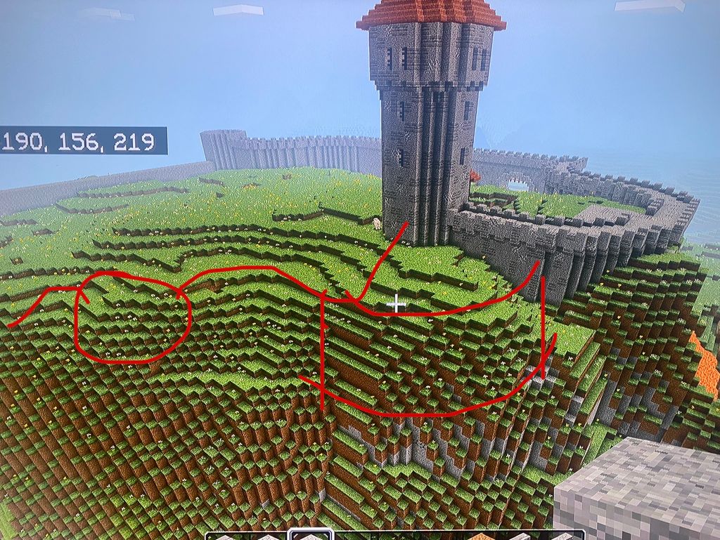 Pour les douves je sais pas. J’y avais pas songé en réalité mais je me dis qu’un château fort sans douve c’est plus vraiment un château fort. A la limite juste pour l’entrée, mais je sais pas si j’aurais moyen de build un pont-levis pour que ce soit cohérent.