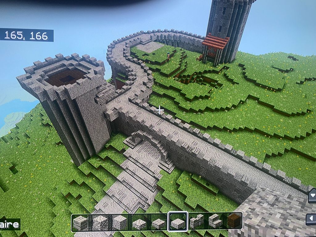 J’ai décidé de build un immense château fort en haut d’une montagne, dans une vallée, avec vue sur des pics enneigés encore plus élevés que la montagne. Soyez indulgents svp, et j’espère obtenir des conseils en plus de critiques avisées pour améliorer mon projet au fur et à mesure, faire des retouches, etc. Je joue avec un pack de texture offert avec la deluxe édition (clarity) donc c’est pas forcément le plus beau Minecraft qui soit. Aussi j’essaie de build au maximum en respectant le relief de base, je terraforme très légèrement juste pour mieux épouser les formes à des fins esthétiques.