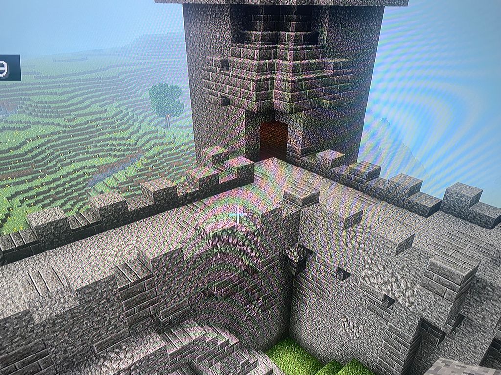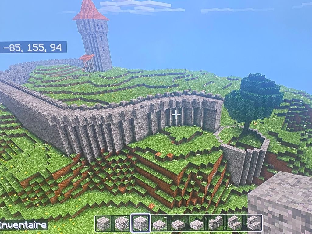Je suis quand même en train de me dire qu’un mur de 2 cubes de largeur aurait suffit, avec 4 cubes en haut pour faire les remparts. J’aurais économisé du temps, et un peu d’espace intérieur. Oups