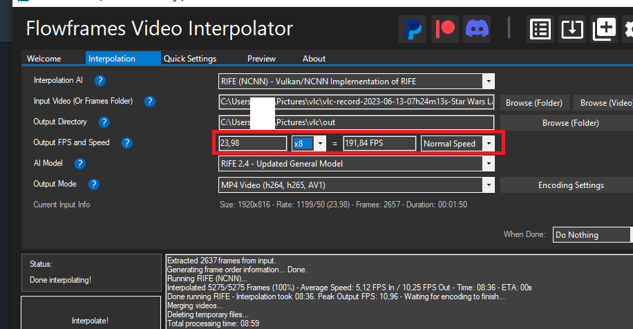 mais j'aurais pu faire un x4 (donc 96 fps) mais en générales les site bride a 60 fps et le rendu aurez était a peu plus long