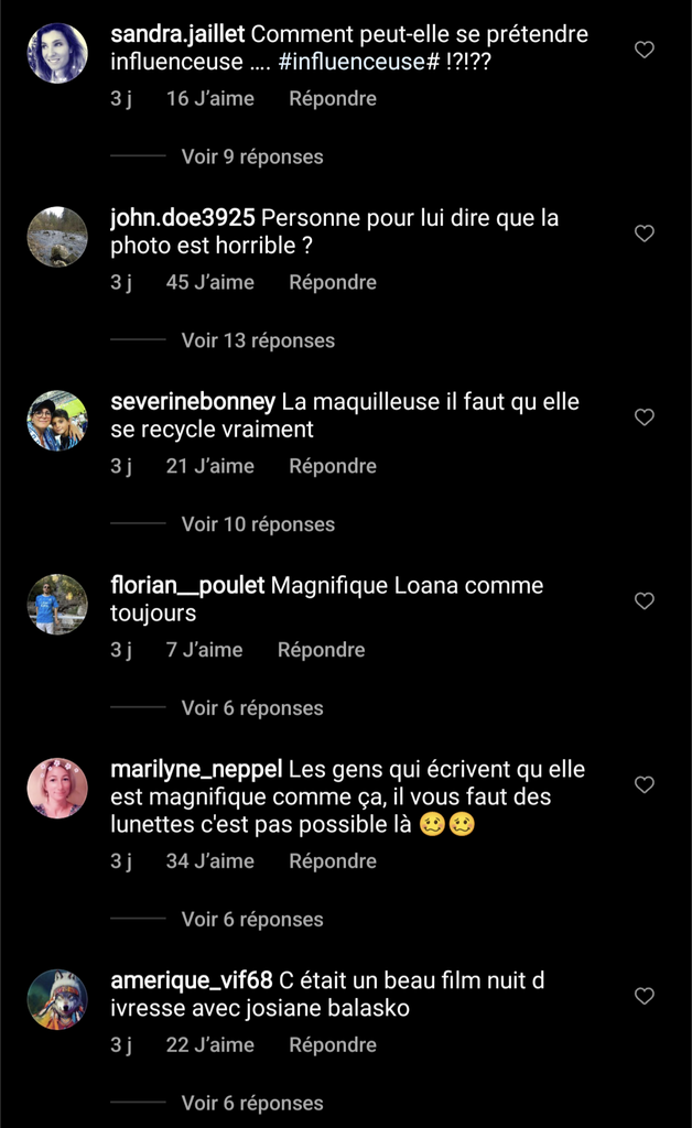 J'ai jamais vu autant de méchancetés que sous les commentaire de Loana.