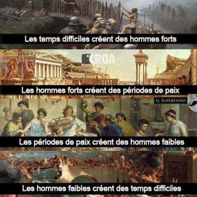 Les temps difficiles créent des hommes forts Les hommes forts créent des périodes de paix