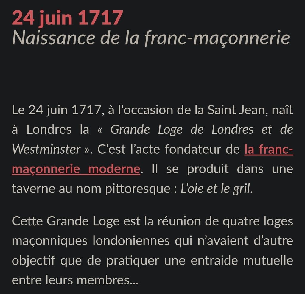 Le 24 Juin c'est la fête des Franc maçons