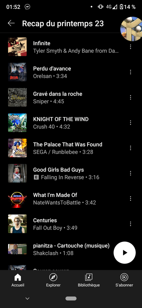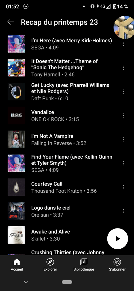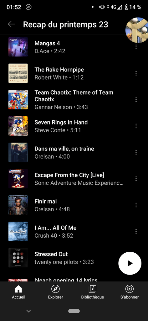 La moitié de la playlist c'est du Sonic