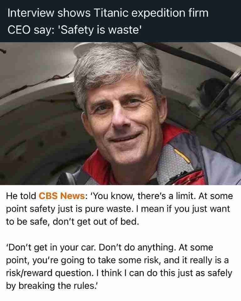 « Le PDG d'OceanGate, coincé dans un submersible de 22 pieds lors d'un voyage malheureux pour voir l'épave du Titanic, a expliqué un jour qu'il n'engageait pas de "Blancs de 50 ans" ayant une expérience militaire pour être capitaine de ses navires parce qu'ils n'étaient pas "une source d'inspiration". »