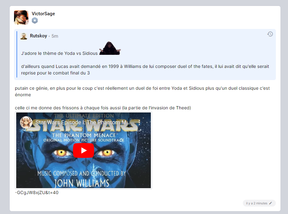 c'est quoi ta musique préférée de Stars Wars tout format confondu ?