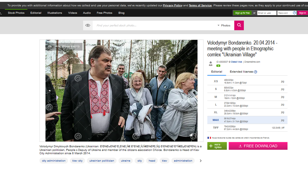 Vladimir Bondarenko (1952-2021), originaire de la région de Tchernigov, il était d’une famille de paysans et kolkhoziens, bien intégrés dans l’Union soviétique, et qui étaient communistes. Il fit des études supérieures en pédagogie et en histoire (1972-1977), et devînt professeur dans cette discipline dans une école de sa région (1976-1977), réussissant à s’élever socialement en profitant du système soviétique, il était également francophone. Il entra en politique en intégrant le parti communiste ukrainien (1977-1992). il fut l’un des apparatchiks du parti communiste, en charge de la gestion d’un arrondissement de la ville (1986-1992), avec toutes les prérogatives et le pouvoir inhérents à la fonction. A l’écroulement de l’URSS, il sentit le vent tourner, et manœuvra, d’abord en devenant dans le privé directeur du marketing dans une grande entreprise pétrolière ukrainienne (1992-1996), puis en glissant vers les partis européistes, ultralibéraux et pro-américains. Il se présenta au Conseil municipal de Kiev, où il fut élu (1990-1996), puis à la Rada d’Ukraine, élu (1994-1998), et fut nommé vice-ministre de la Justice (mars-juillet 1996). Il fut réélu à la Rada (1998-2002), rejoignant le parti Notre Ukraine, réélu député à la Rada (2002-2006), et soutînt la Révolution Orange ( hiver 2004-2005), ainsi que la politique du Président Iouchtchenko (2005-2010). Il lança l’idée de la construction d’une église du Patriarcat de Kiev, sur le site de la révolution, qui fut construite et qu’il finança en partie de son argent (2005-2006), puis d’un musée ethnographique ukrainien. Ce dernier fut construit sans permis de construire et lui apporta quelques ennuis, notamment médiatiques et avec la justice, mais il ne fut jamais inquiété et le lieu devînt un moment populaire. Il fut encore réélu deux fois (2007-2012, puis 2012-2014), s’étant rallié à la fameuse « Reine du Gaz », la femme aux tresses, Ioulia Timochenko. Il supporta la révolution américaine du Maïdan (hiver 2013-2014), étant nommé chef de l’administration de la ville de Kiev, et se présenta aux élections municipales pour devenir maire (non élu, 3e place), ainsi qu’au Conseil municipal sous la liste du parti de Timochenko, où il fut élu (mars 2014). C’est lui qui lança la création du bataillon de représailles Kiev, l’un des premiers (20 mars), et apporta son aide pour son organisation. Il ne put faire illusion longtemps, ce pur carriériste fut d’abord débarqué de la Rada (13 mai), puis il démissionna du poste de chef de l’administration de la ville de Kiev (10 juin), mais fut quand même, humiliation supplémentaire, démis de ses fonctions par un décret présidentiel (25 juin), et remplacé illico par le célèbre boxeur Vitaly Klitschko, qui devînt le maire de la ville. Mis en difficulté, il tenta de prendre la mairie de Kiev (25 octobre 2015), mais ne réussit pas dans cette entreprise (4e place), restant toutefois membre du conseil municipal (2015-2020). Il tenta de s’accrocher à se ce poste, se représentant encore au conseil (octobre 2020), mais fut cette fois-ci définitivement débarqué, il était toujours sous l’étiquette du parti de Timochenko, dont l’influence avait énormément déclinée.Son passé communiste n’avait jamais été oublié, et dépassé sur sa droite par plus populaire et surtout plus radical que lui, il disparut ensuite totalement de la scène politique et médiatique. Il est à noter que son épouse… comportement népotique s’il en fut, fut son attaché parlementaire pendant sa longue carrière de député (20 années !). Il mourut à Kiev de maladie, le 24 août 2021, ayant depuis longtemps un grave problème d’obésité.