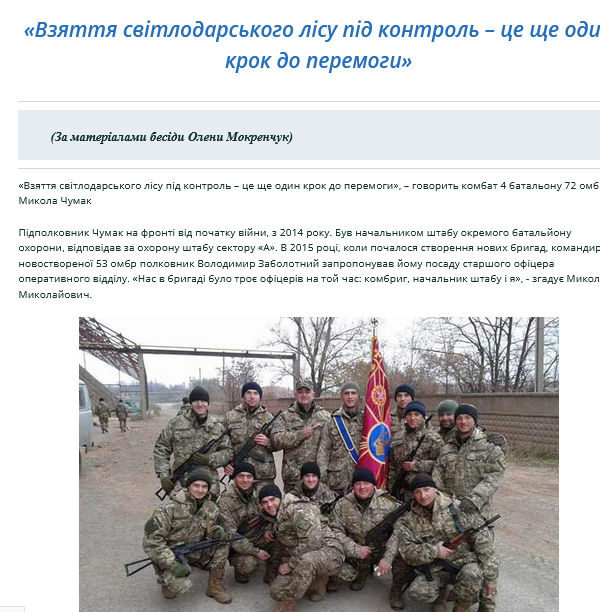 Nikolaï Tchoumak (1983-), originaire de Rivne, région de Vollhynie, il fit des études supérieures dans une école de cadets pour devenir officier. Il fut versé dans la 53e brigade mécanisée, puis dans la 72e mécanisée, commandant de la compagnie de sécurité (équivalent police militaire, gendarmerie, 2010). Chef d’état-major d’un bataillon de sécurité (2014), puis cadre dans un État-major de la la direction des opérations, il avait de grandes ambitions politiques, de nombreux chefs de bataillon étant rentré à la Rada, il se présenta lui aussi aux élections législatives (octobre 2014), mais ne fut pas élu. Son échec en terminant avec ses velléités politiques, du moins pour l’instant. Il fut médaillé par le Président Zelensky une première fois (17 mai 2017), puis fut nommé commandant du bataillon Kiev, dans le sein de la 72e brigade mécanisée (2018-2022). Il fut interviewé sur les attaques que l’Ukraine mena illégalement dans la région de Svetlodarsk et auquel son bataillon participa (26 février 2019), se vantant beaucoup de succès insignifiants (la prise d’une tranchée) et des attaques menées contrairement à la parole donnée des accords de Minsk. Malgré ses fanfaronnades, il dut attendre trois autres années pour recevoir une autre médaille, l’État-major ukrainien ne fut pas dupe. Il fut nommé commandant de la 110e brigade mécanisée (12 avril 2022), unité nouvellement constituée qu’il dut mettre sur pied. Sa brigade fut envoyée dans la région de Donetsk, où elle se trouve toujours. Il fut médaillé à trois reprises par le Président Zelensky (6 juillet, 14 octobre), puis du titre suprême de « Héros de l’Ukraine avec Étoile d’Or » (5 décembre).