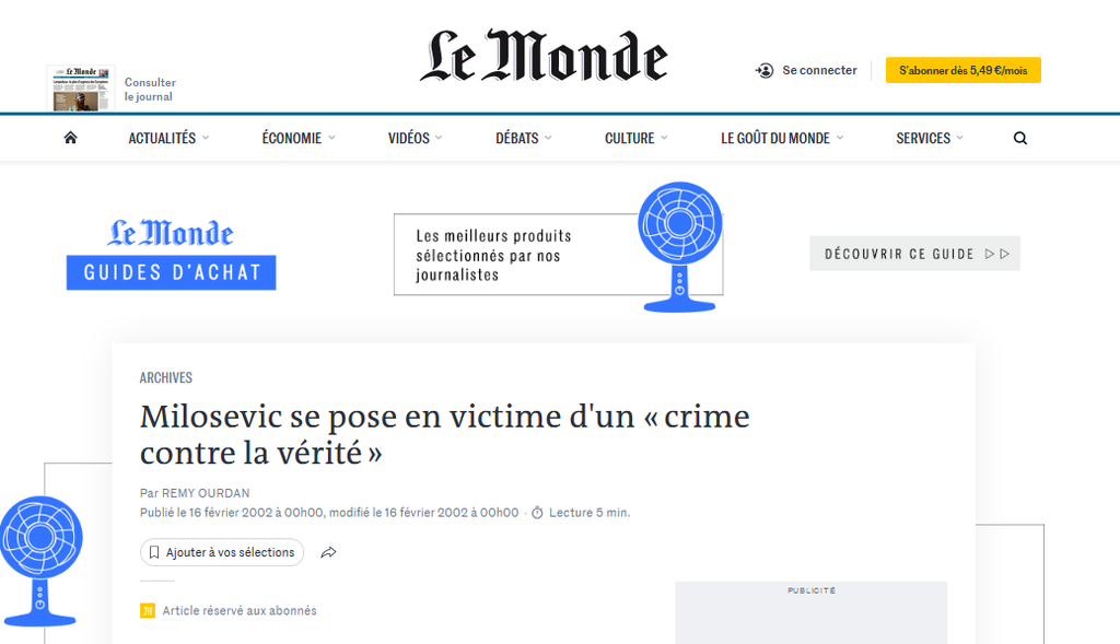 https://www.lemonde.fr/ar[...]vars_3556442_1819218.html "" LE DOSSIER Milosevic s'alourdit."" Non, c'est le dossier de l'immonde qui s'alourdit en l'occurrence. Pour rappel, la rédaction de Le Monde était dirigé par Edwy Plenel.