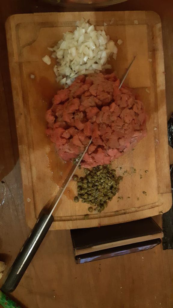 Viande de boeuf, câpres et oignons