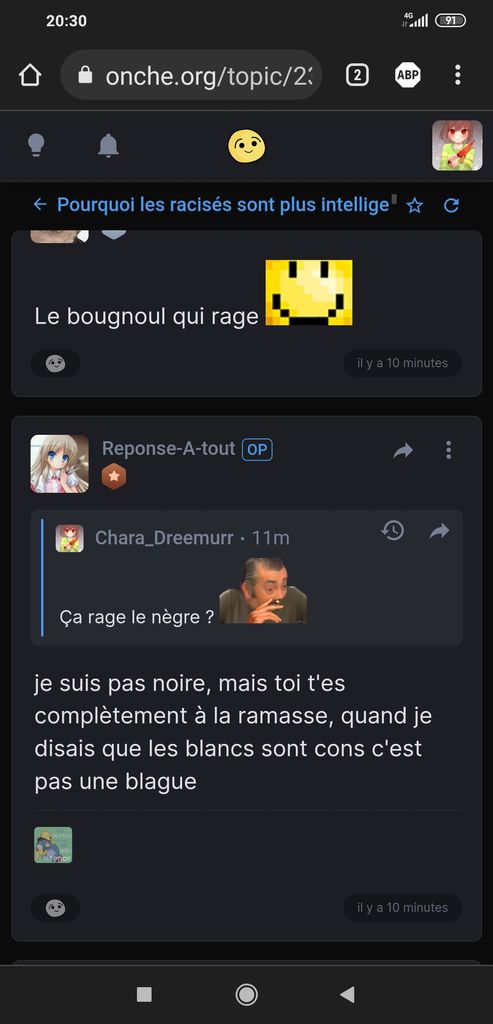 Pourquoi tu rages au juste, sale pute ? T'as une PP manga comme moi, alors ferme ta gueule