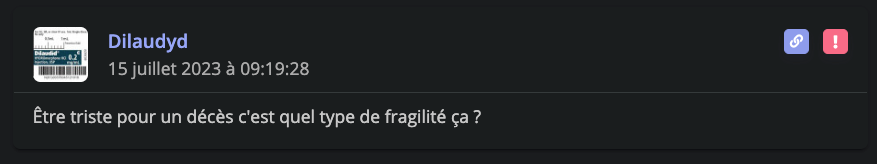Bah surtout y'a des deuils concrètement en 5 minutes ton deuil est fait, et d'autres il te faudrait plusieurs années de congés pour t'en remettre donc c'est un peu con de mettre 3 jours universellement.