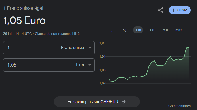 Nan par contre j'ai déjà vu à 5 /6 chf donc la même en euro