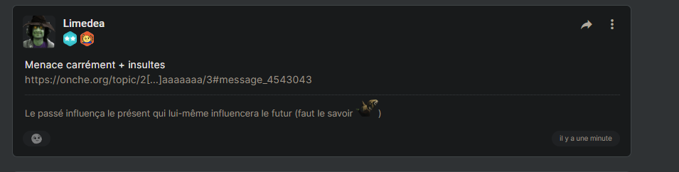 Toi depuis 3 ans : pute qui me file des topics rouges sous 10 secondaires à répéter mes posts religieusement